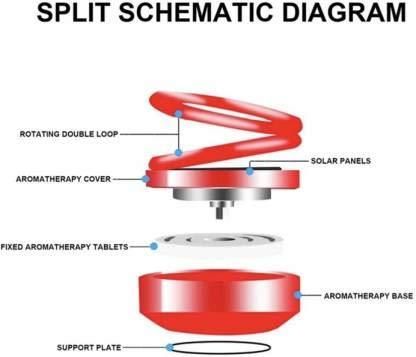Product:- Car / Room Air Freshener- Solar Power Rotating Car/Room Air Freshener Perfume, Long Lasting French Organic Fragrance Package Contains: 1 Piece of Car Air Freshner Dimensions(L x B x H in cm): 9 x 9 x 3 Material: Plastic Color: Colour as per availability Combo/Set Of: Pack of 1 Additional Information: Features: High-end double ring rotary air purifier for car / office / bathroom air freshener 1. good quality material, double rotating ring upper suspension and lower magnetic structure, round can 360 degree blown aroma, can adjust the aroma concentration 2. Eliminated odor: Professional deodorant ingredients are added to essential oils for odor molecules to effectively capture and decompose. Weight: 70grms
